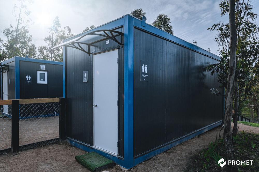 Colegio Modular Provisorio compuesto por dos naves, una para cursos de prebásica y otra para básica Total 432m2 Arriendo 3 años aprox