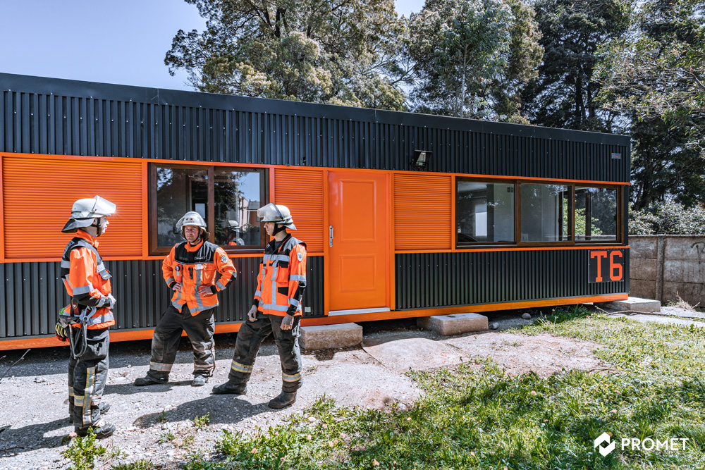 Cuartel de Bomberos climatizado y acondicionado para la zona compuesta de Dormitorios, Baños, Cocina y sala de estar.